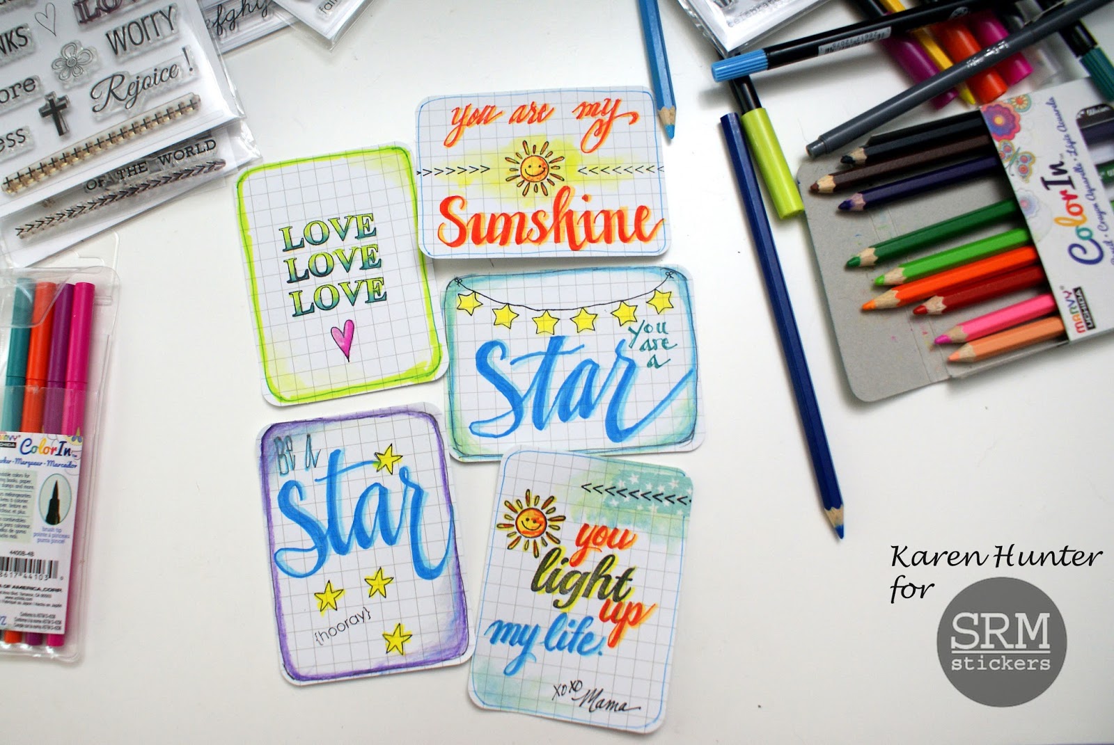 My SRM Faith and Planner stamps are giving me great inspiration for these notes. I used several stamps, brush markers (LePlumeII) and my ColorIn watercolor pencils to create a set for next week.